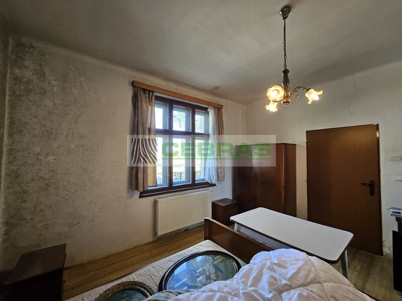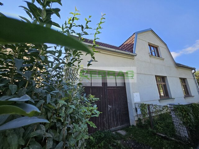 Zděný, přízemní, samostatně stojící dům do "L" s obytným podkrovím, navazující technickohospodářskou budovou (sklad paliv, dílna), průjezdem do dvora ze dvou stran, předzahrádkou a zahradou. Dispozice: vstupní chodba s kuchyní, obývací pokoj, ložnice, spíž, toaleta, koupelna s vanou, schodiště do podkroví, podkrovní ložnice s možností dalšího rozšíření. Napojená hospodářská budova sloužící jako sklad a dílna, s vstupy ze dvora a zahrady. Zatravněný dvůr s vraty na vedlejší komunikaci, v rohu malá vedlejší stavba. Elektro, vodovod, kanalizace, lokální vytápění s rozvodem do radiátorů. Po celkové rekonstrukci ( 2000) +střešní krytina, okna, půdní vestavba. Plocha pozemku 820 m2, zastavěná plocha 120 m2.